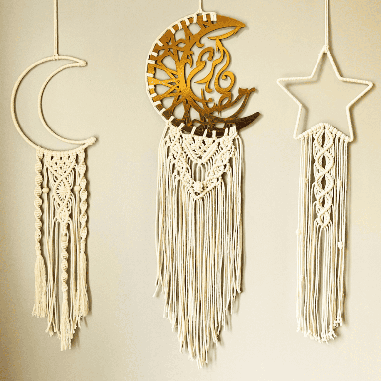 Macramé Crescent Moon Wall Hanging – Handmade Boho Decor